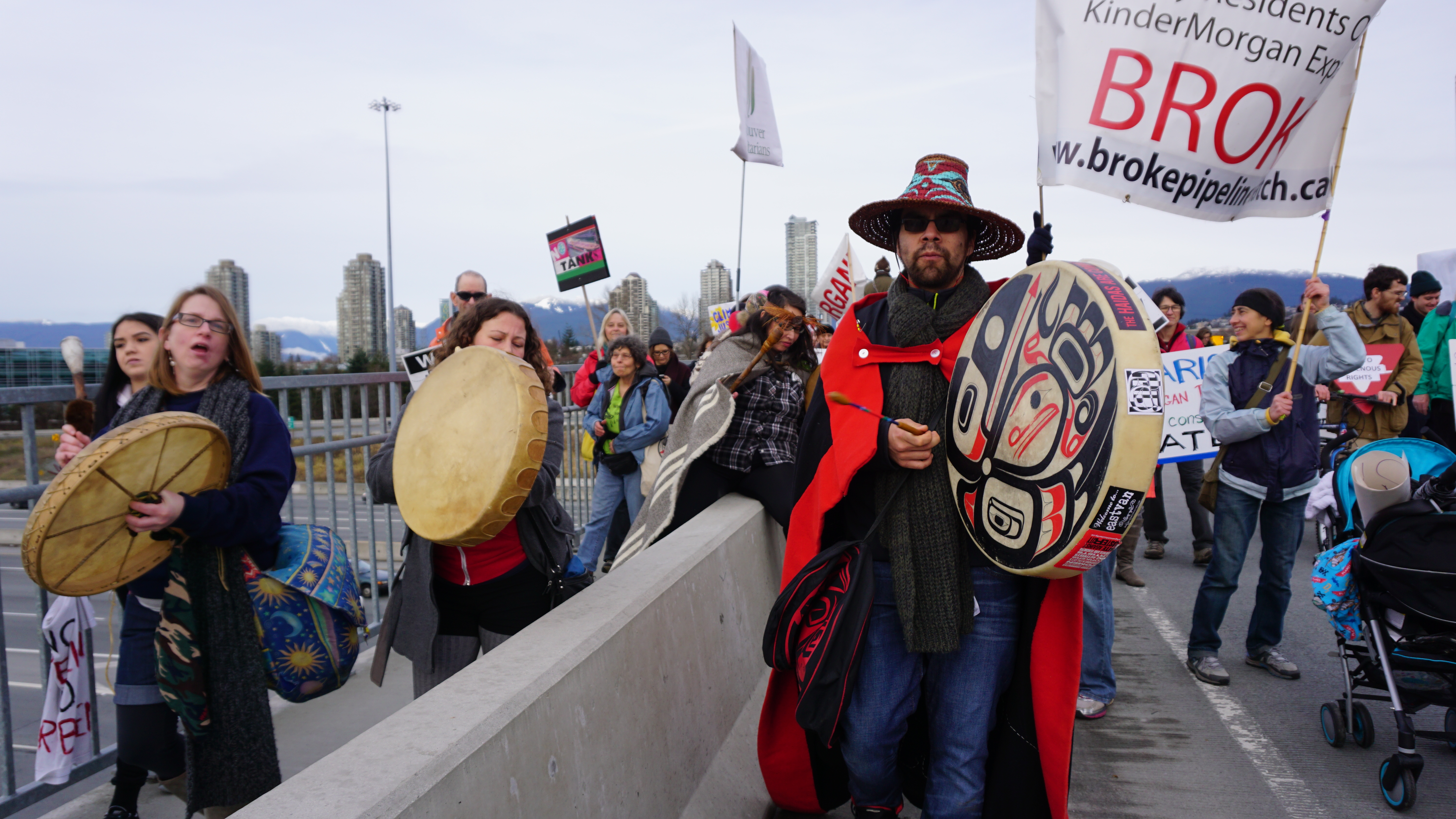 Burnaby Bridge takeover ← Previous Next → Protesters take over the Burnaby Bridge during National Energy Board hearings for the Kinder Morgan Trans Mountain expansion in winter of 2016. Photo by Elizabeth McSheffrey.