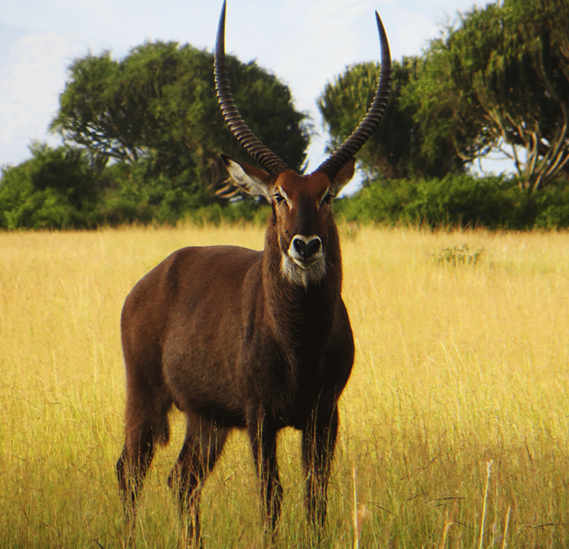 Waterbok ← Previous Next → A waterbok surveys our van from the plains of Queen Elizabeth National Park in Uganda. Photo by Elizabeth McSheffrey.